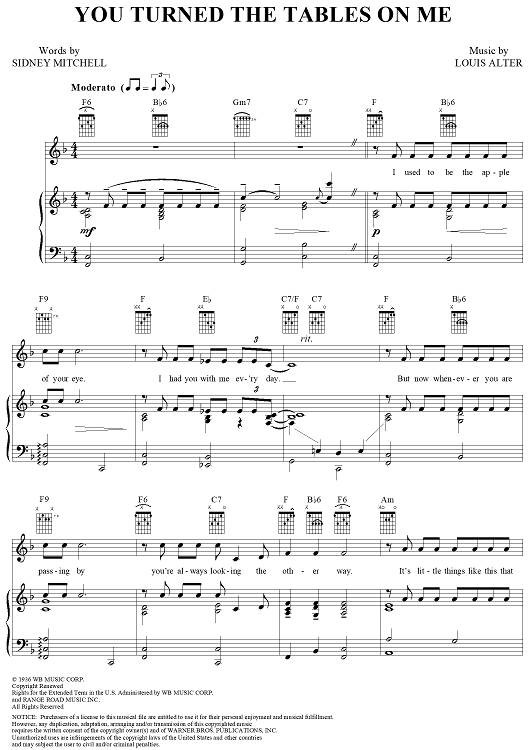 Digital Sheet Music for You Turned the Tables on Me by Louis Alter, Sidney Mitchell scored for Piano/Vocal/Chords; id:305414