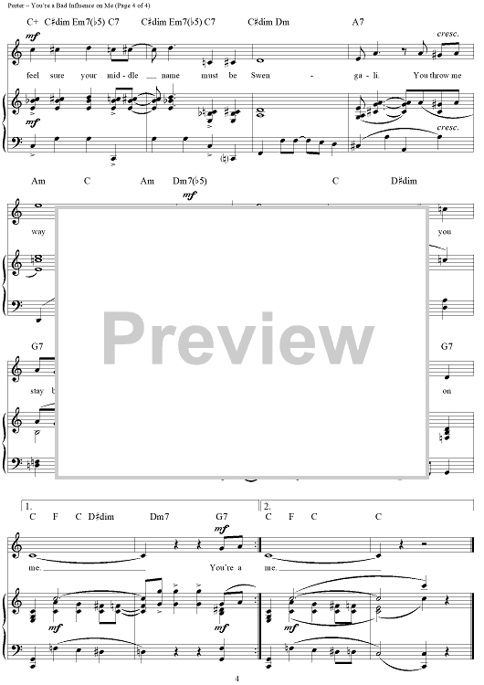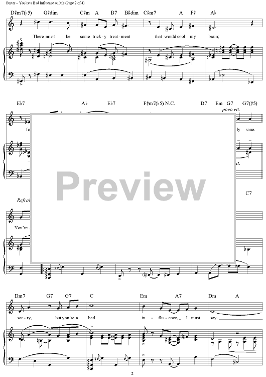 Digital Sheet Music for You're a Bad Influence on Me by Cole Porter scored for Piano/Vocal/Chords; id:316506