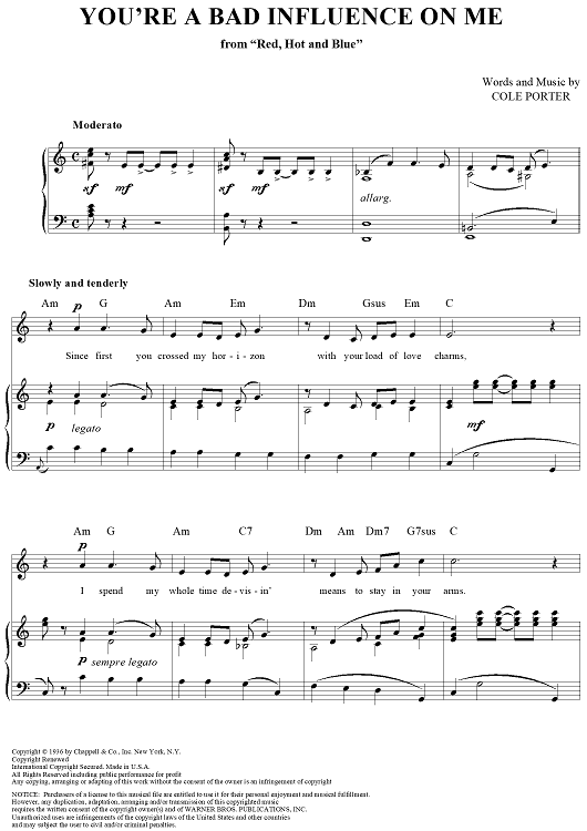 "You're a Bad Influence on Me" Sheet Music by Cole Porter