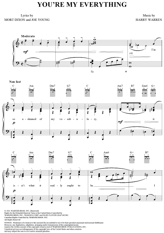 "You're My Everything" Sheet Music by Harry Warren