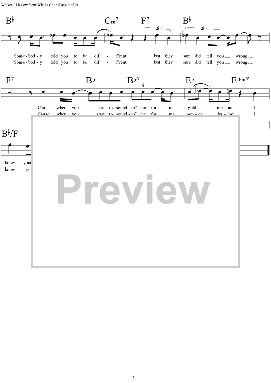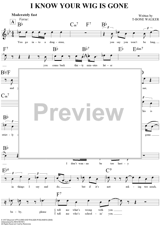 Digital Sheet Music for I Know Your Wig Is Gone by T-Bone Walker scored for Lead Sheet; id:291283