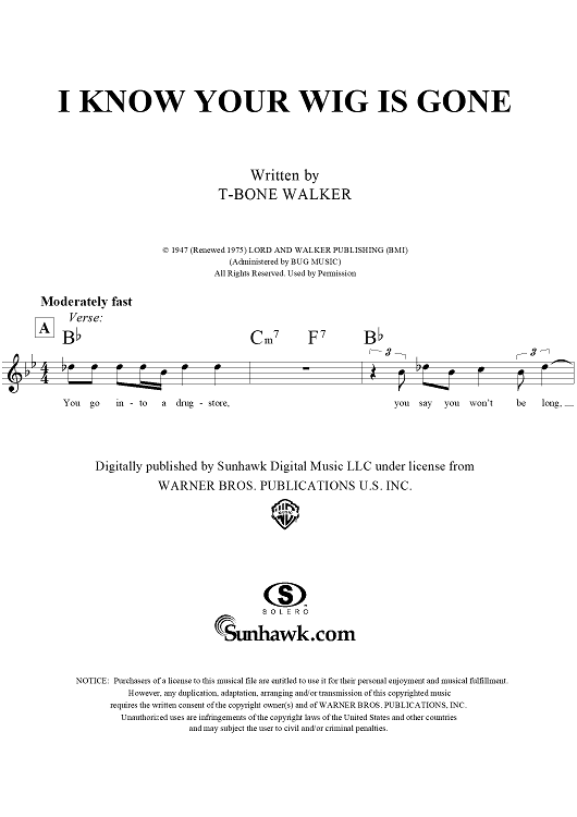 "I Know Your Wig Is Gone" Sheet Music by T-Bone Walker