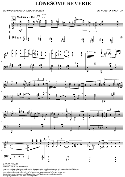 Digital Sheet Music for Lonesome Reverie by Riccardo Scivales, James P. Johnson scored for Piano Solo; id:265838