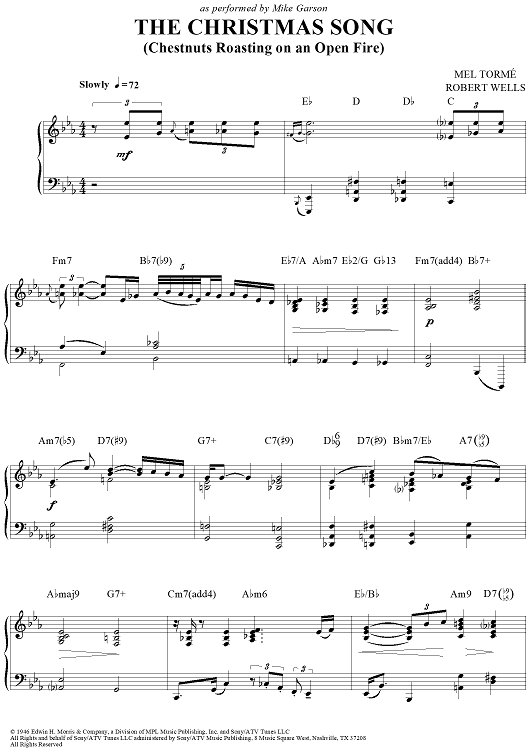 Digital Sheet Music for The Christmas Song (Chestnuts Roasting On An Open Fire) by Mel Torme, Robert Wells, Mike Garson scored for Piano Solo; id:366875
