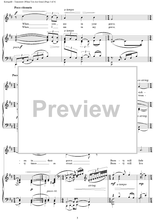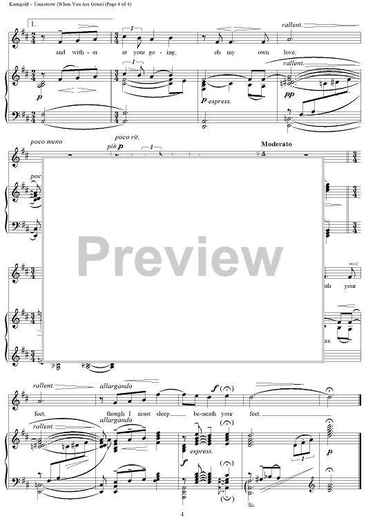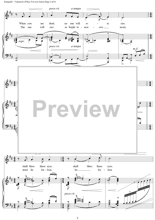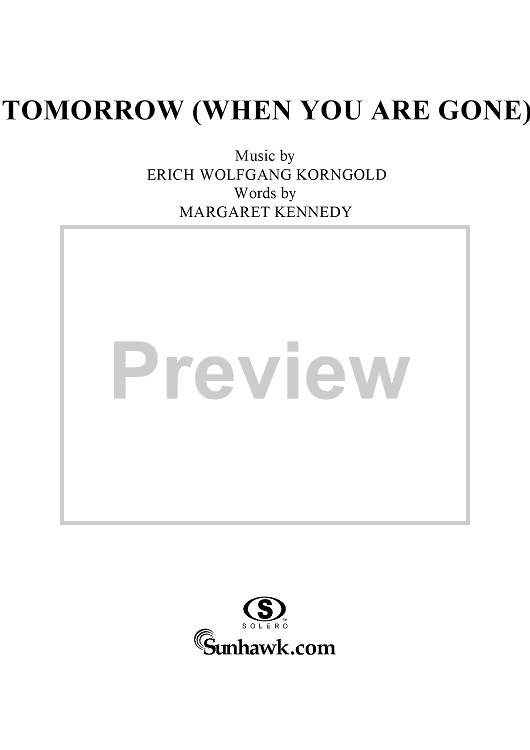 Digital Sheet Music for Tomorrow (When You Are Gone) by Erich Wolfgang Korngold, Margaret Kennedy scored for Piano/Vocal; id:120512