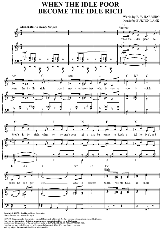 Digital Sheet Music for When the Idle Poor Become the Idle Rich by Burton Lane, E.Y. "Yip" Harburg scored for Piano/Vocal/Chords; id:313988