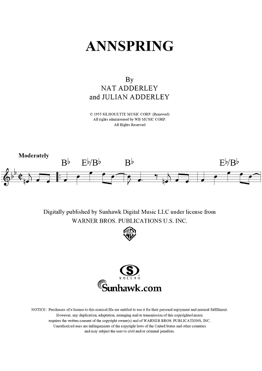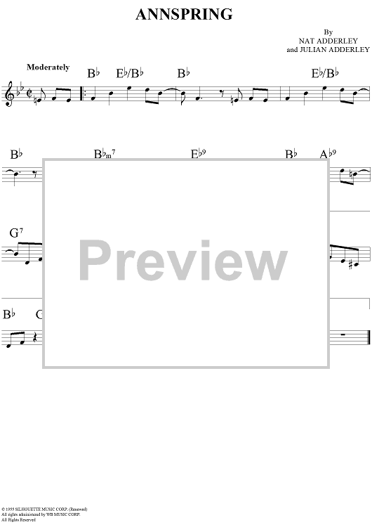 Digital Sheet Music for Annspring by Nat Adderley, Cannonball Adderley scored for Lead Sheet; id:278617