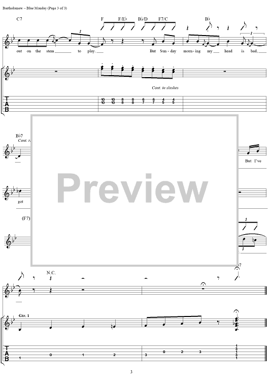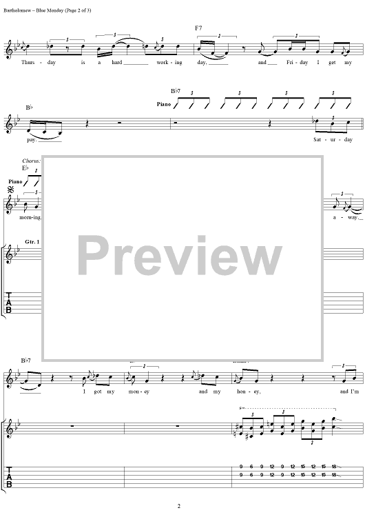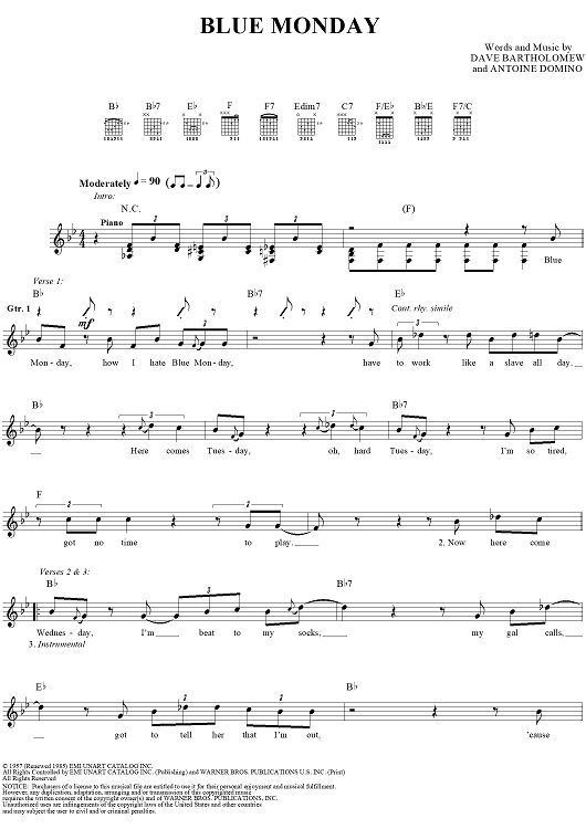 Digital Sheet Music for Blue Monday by Dave Bartholomew, Kenn Chipkin, Fats Domino scored for Guitar Tab/Vocal; id:118990