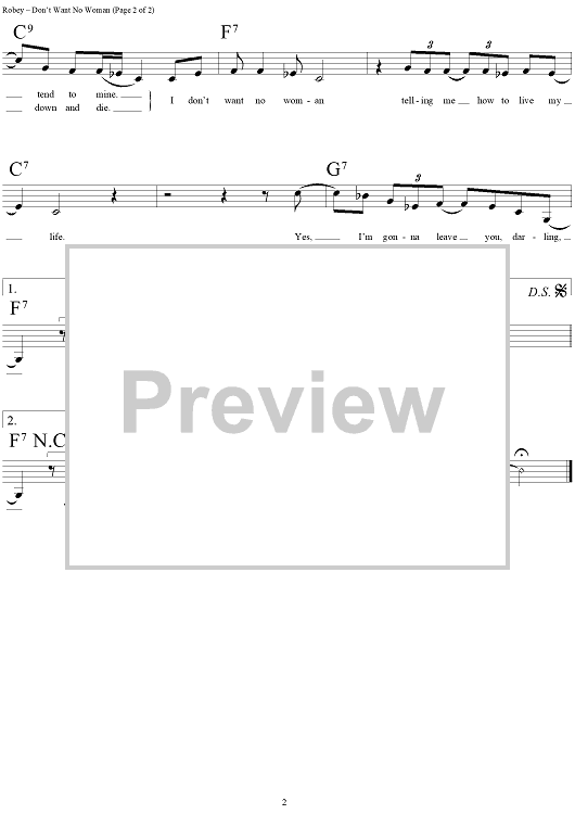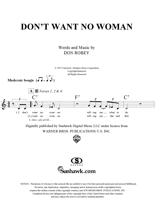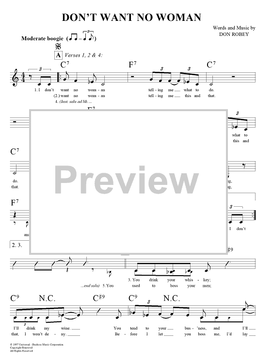 Digital Sheet Music for Don't Want No Woman by Don Robey scored for Lead Sheet; id:290946