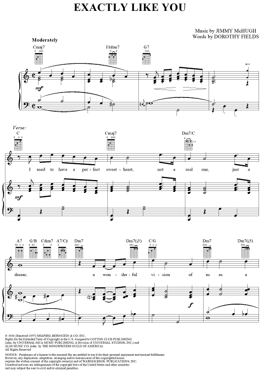Digital Sheet Music for Exactly Like You by Dorothy Fields, Jimmy McHugh scored for Piano/Vocal/Chords; id:287393
