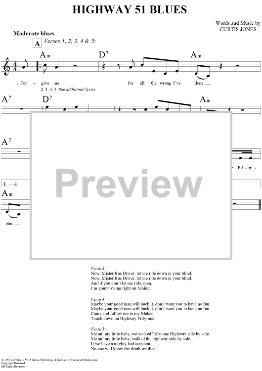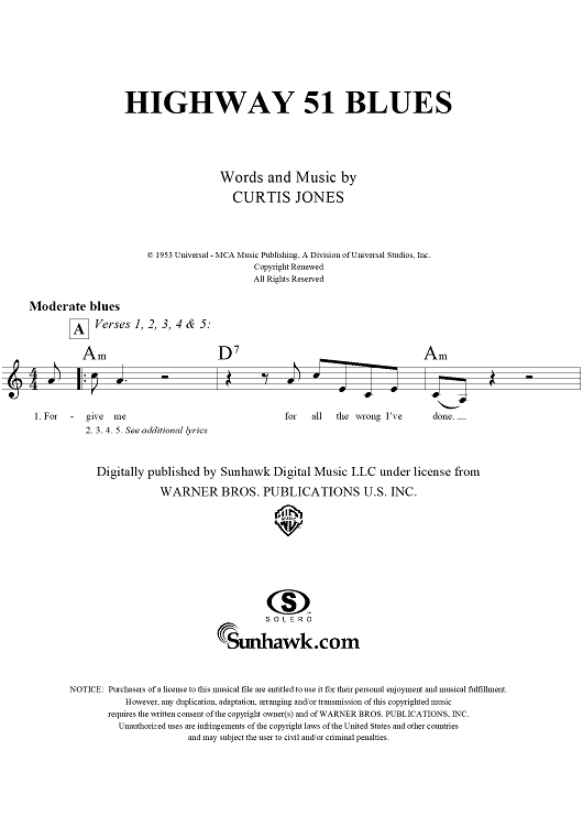 Digital Sheet Music for Highway 51 Blues by Curtis Jones scored for Lead Sheet; id:291046