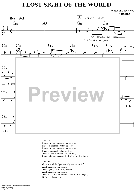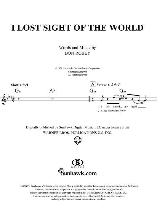 Digital Sheet Music for I Lost Sight of the World by Don Robey scored for Lead Sheet; id:291281