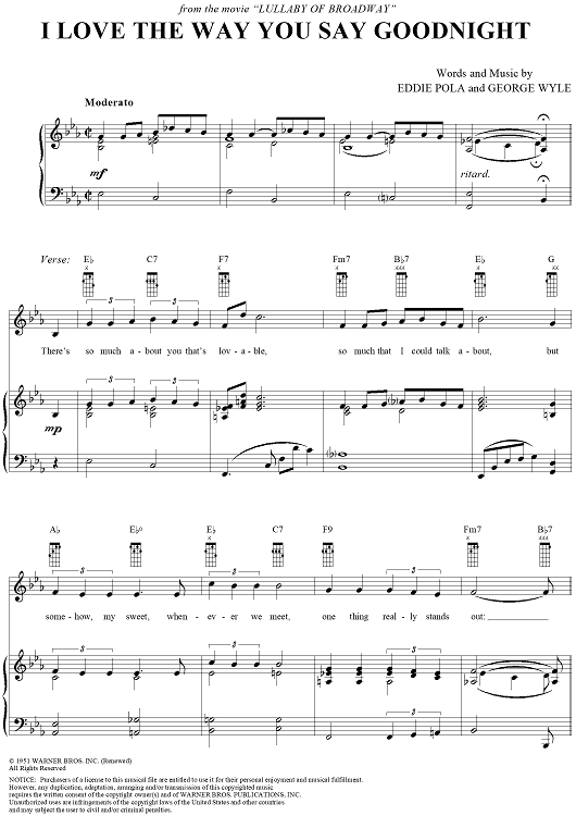Digital Sheet Music for I Love the Way You Say Goodnight by George Wyle, Eddie Pola scored for Piano/Vocal/Chords; id:263317