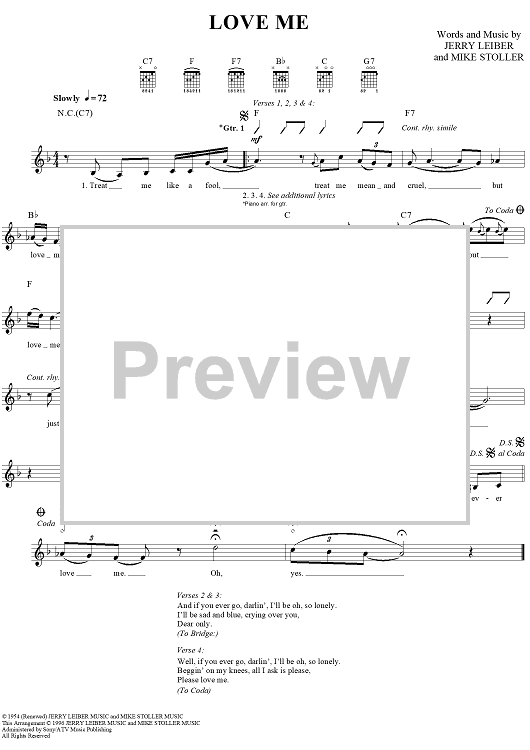 Digital Sheet Music for Love Me by Elvis Presley, Jerry Leiber, Mike Stoller, Kenn Chipkin scored for Lead Sheet; id:113563