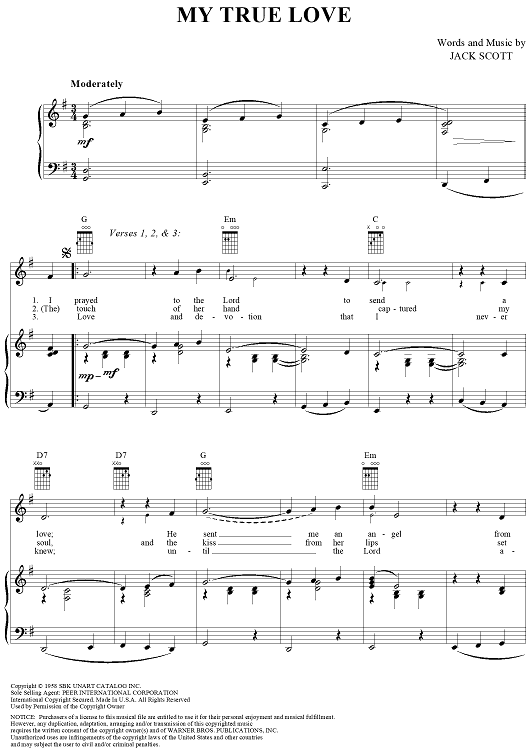 Digital Sheet Music for My True Love by Jack Scott scored for Piano/Vocal/Chords; id:257336