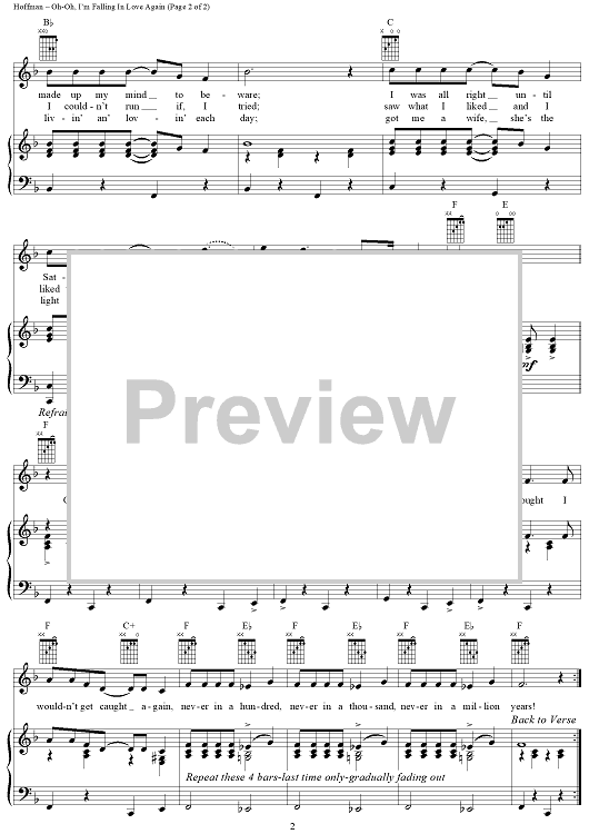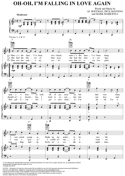 Digital Sheet Music for Oh, Oh I'm Fallin' in Love Again by Jimmie Rodgers, Al Hoffman, Dick Manning, Mark Markwell scored for Piano/Vocal/Chords; id:266399