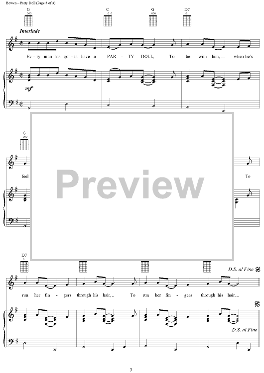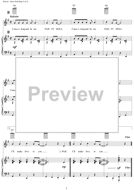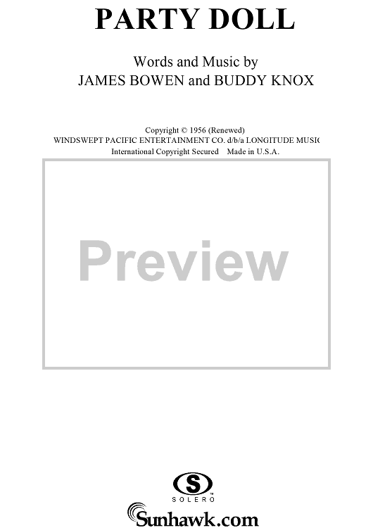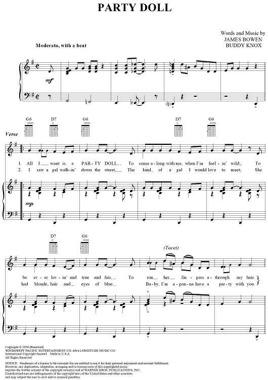 Digital Sheet Music for Party Doll by James Bowen, Buddy Knox scored for Piano/Vocal/Chords; id:124351