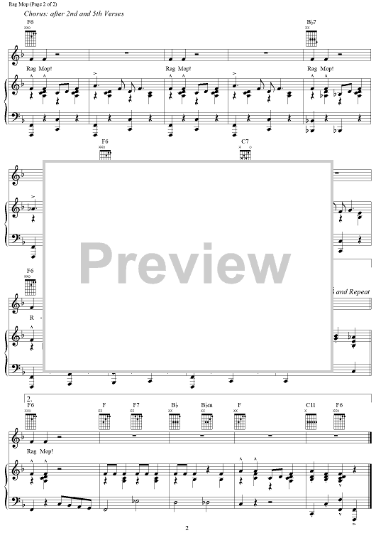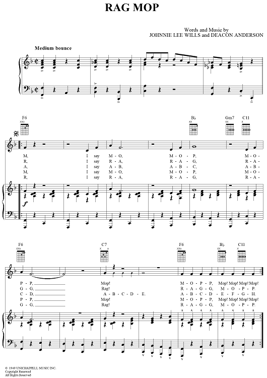 Digital Sheet Music for Rag Mop by Johnnie Lee Wills, Deacon Anderson scored for Piano/Vocal/Chords; id:297273