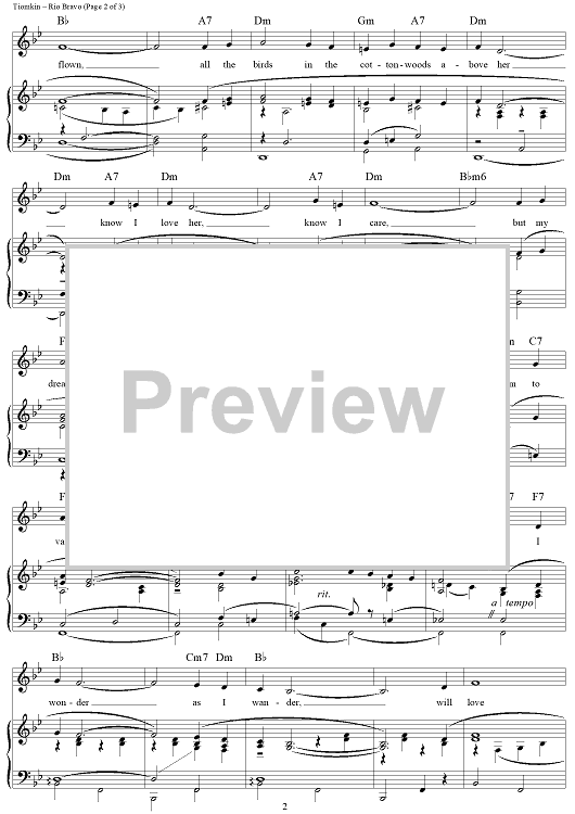 Digital Sheet Music for Rio Bravo by Dimitri Tiomkin, Paul Francis Webster scored for Piano/Vocal/Chords; id:259946