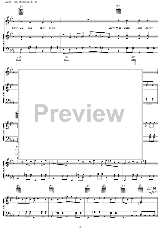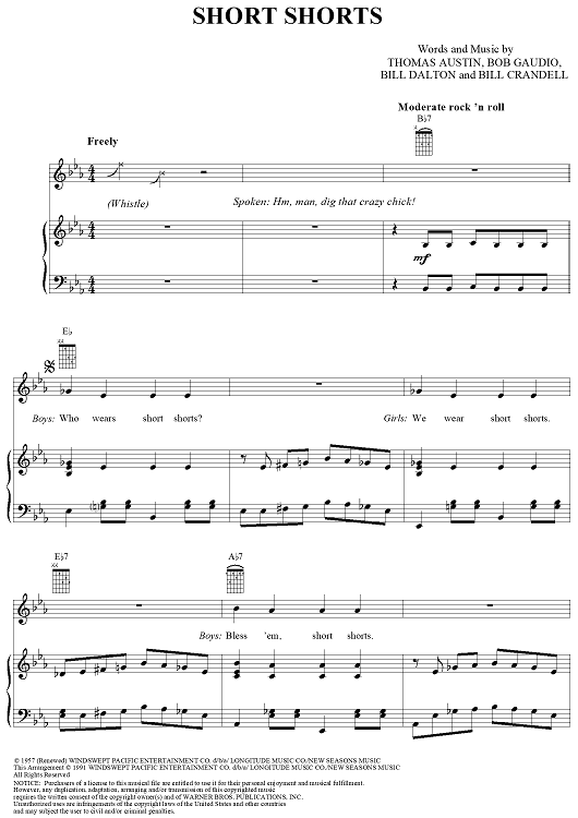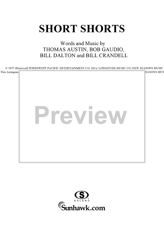 Digital Sheet Music for Short Shorts by Ron Dalton, Bob Gaudio, Thomas Austin, Bill Crandell, Royal Teens scored for Piano/Vocal/Chords; id:124311