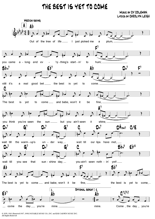 Digital Sheet Music for The Best is Yet to Come by Cy Coleman, Carolyn Leigh scored for Lead Sheet; id:312098