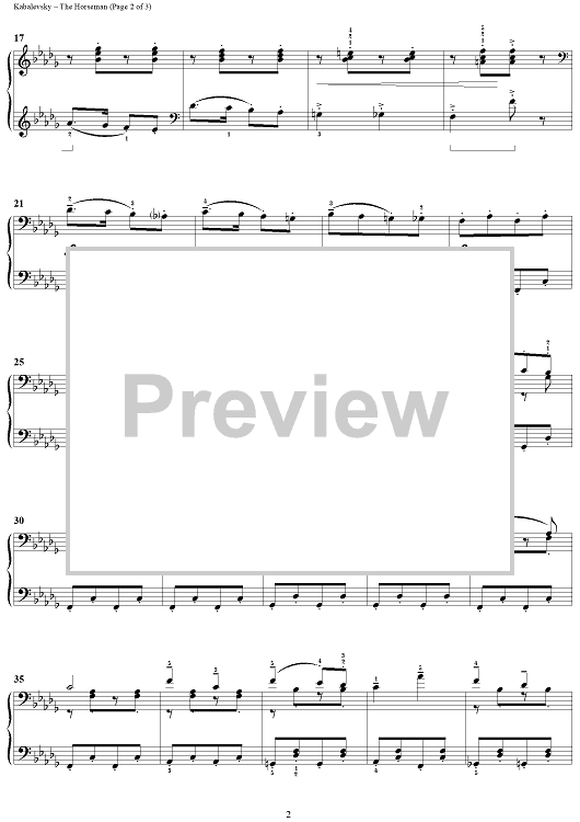 Digital Sheet Music for The Horseman by Dmitri Kabalevsky scored for Piano Solo; id:287503