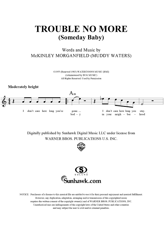 "Trouble No More (Someday Baby)" Sheet Music by Muddy Waters