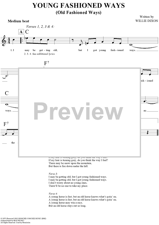 Digital Sheet Music for Young Fashioned Ways (Old Fashioned Ways) by Willie Dixon scored for Lead Sheet; id:291843