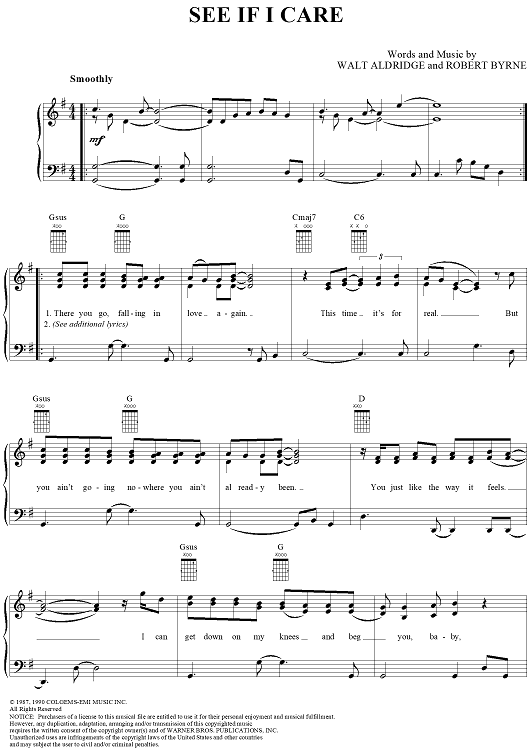 Digital Sheet Music for See If I Care by Walt Aldridge, Robert Byrne, Shenandoah scored for Piano/Vocal/Chords; id:203895