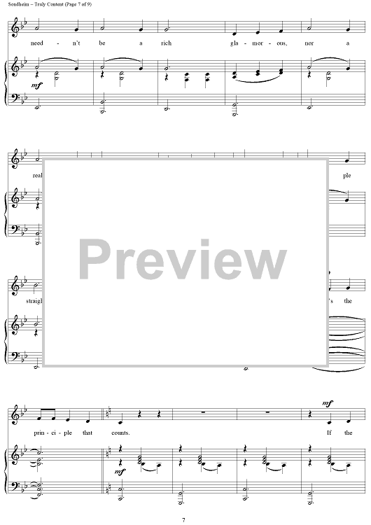 Digital Sheet Music for Truly Content by Stephen Sondheim scored for Piano/Vocal/Chords; id:154821