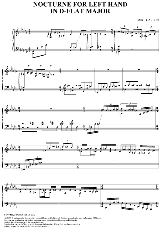 "Nocturne for Left Hand in D-flat Major" Sheet Music by Mike Garson