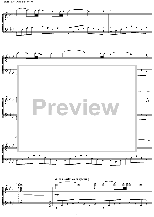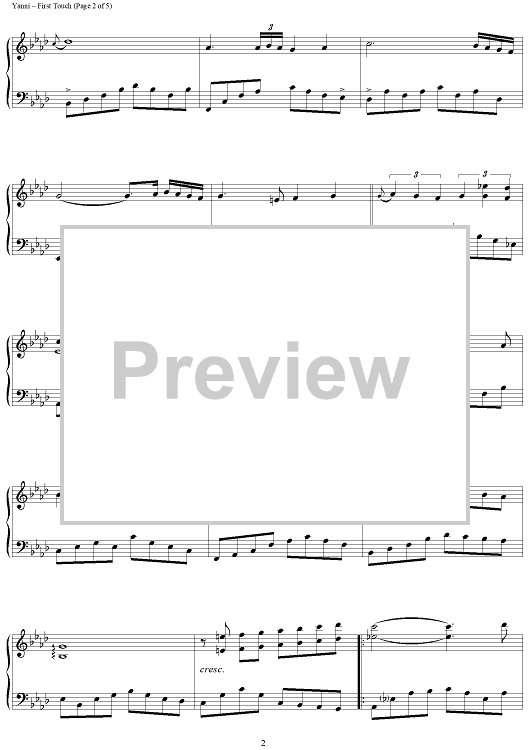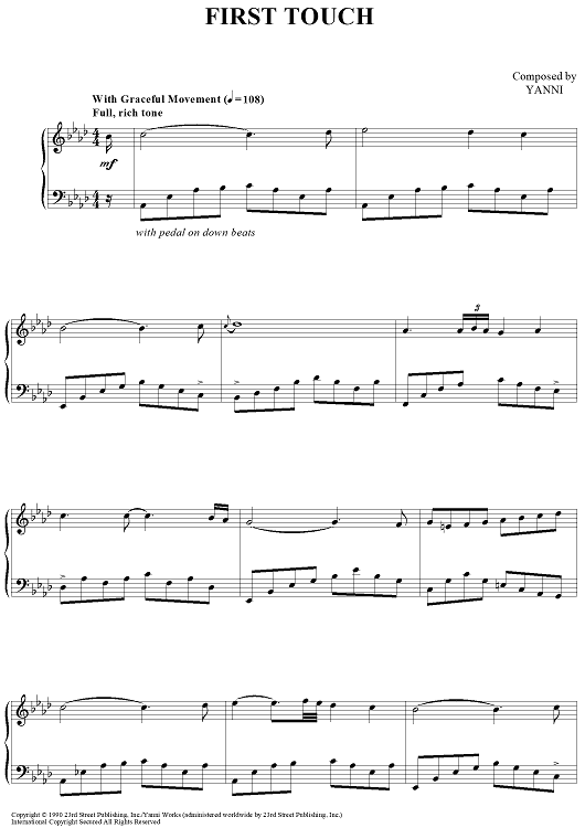 Digital Sheet Music for First Touch by Yanni scored for Piano Solo; id:447057