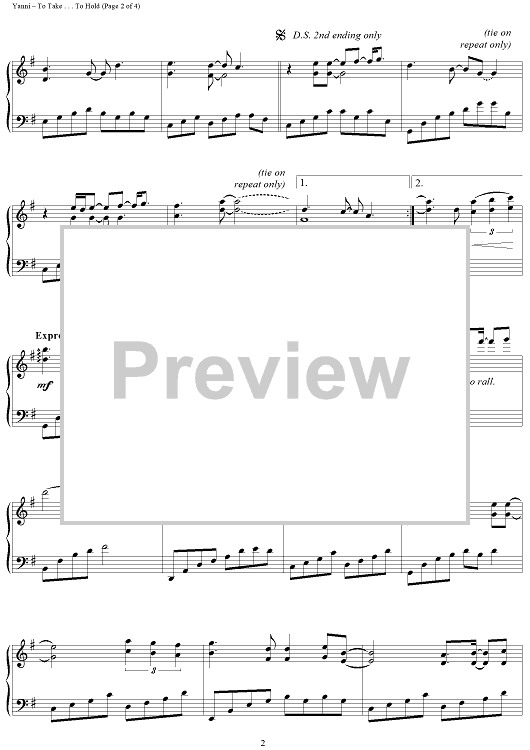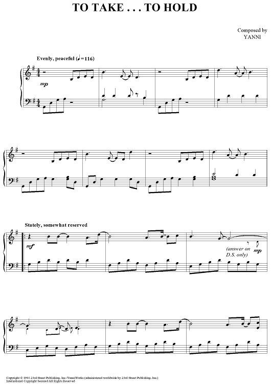 "To Take . . . To Hold" Sheet Music by Yanni