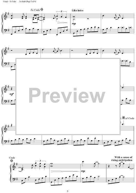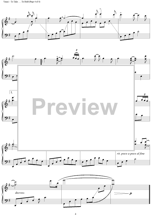 Digital Sheet Music for To Take . . . To Hold by Yanni scored for Piano Solo; id:445044