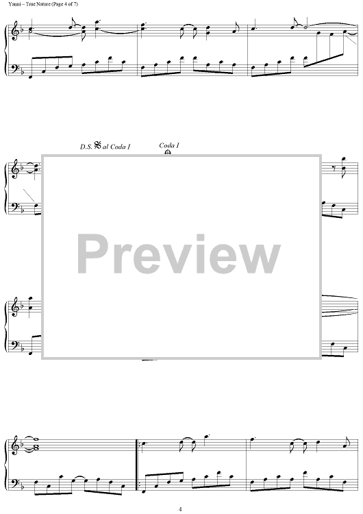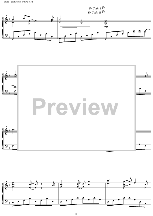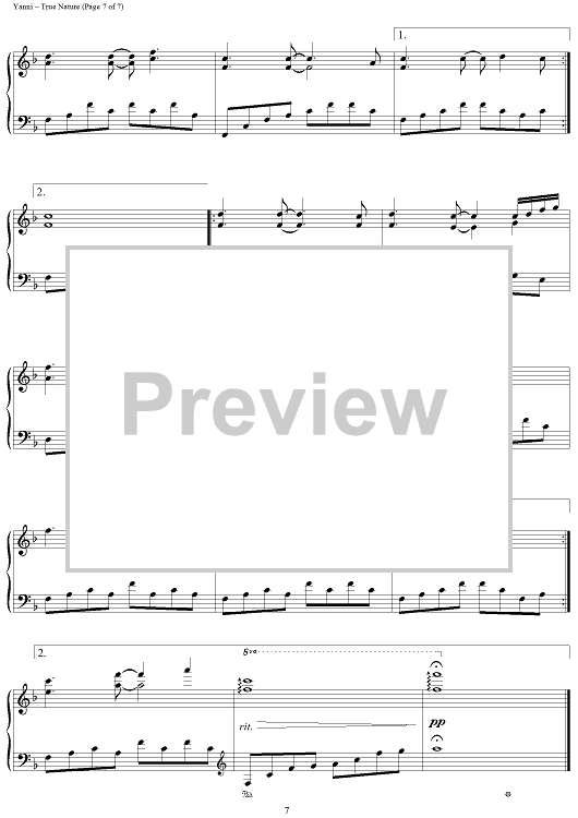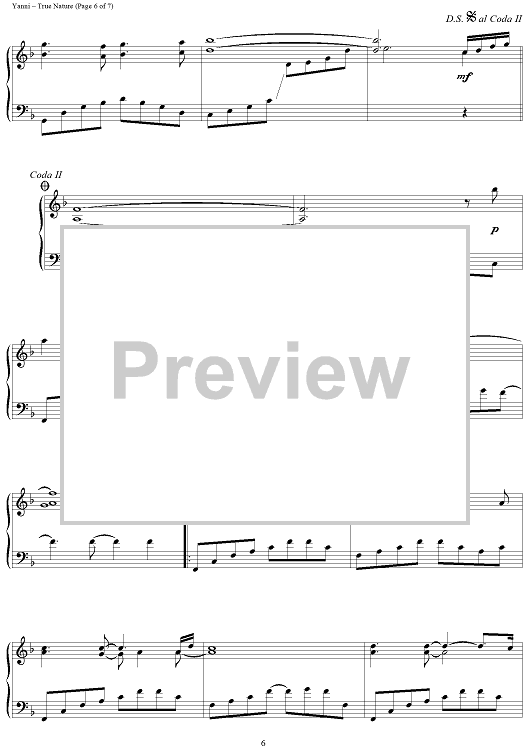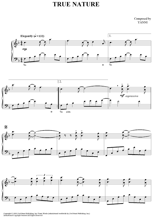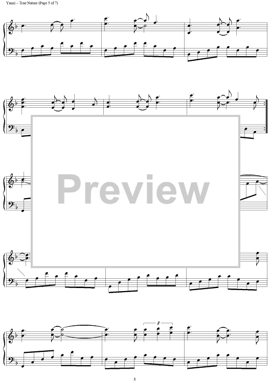 Digital Sheet Music for True Nature by Yanni scored for Piano Solo; id:447065