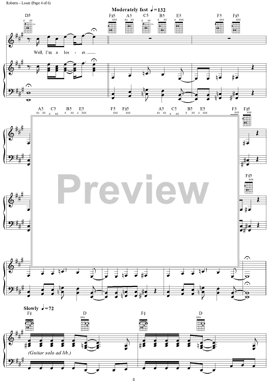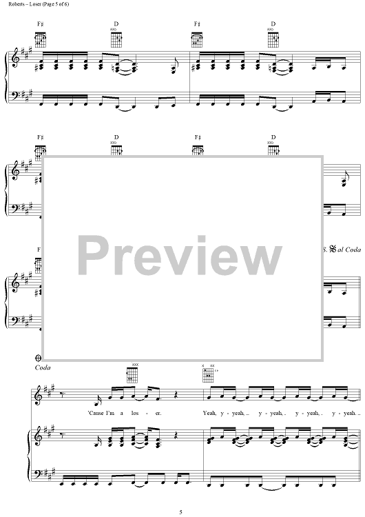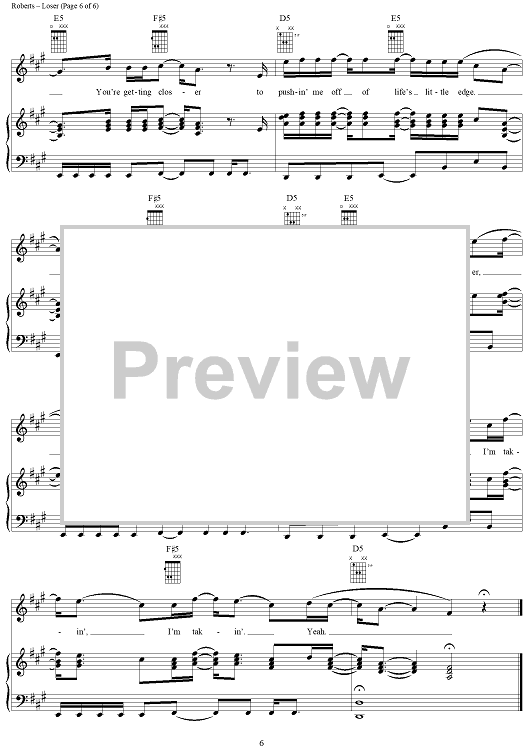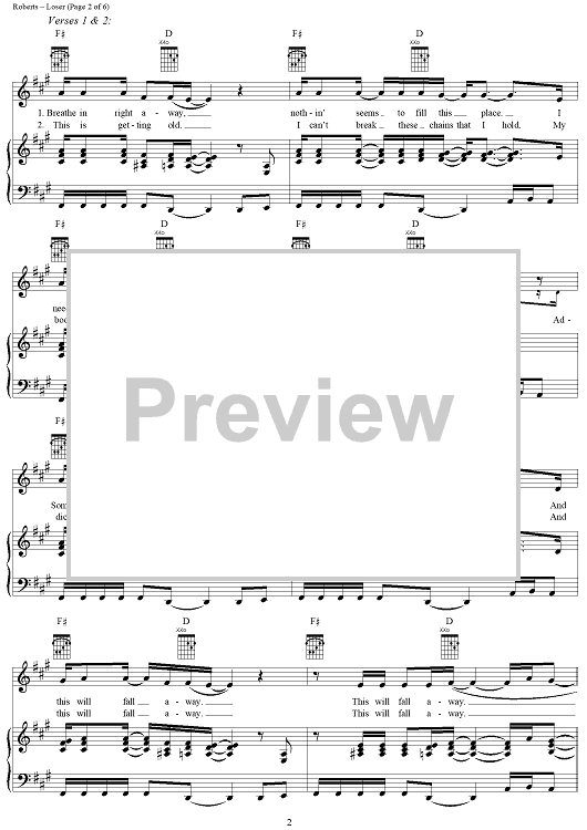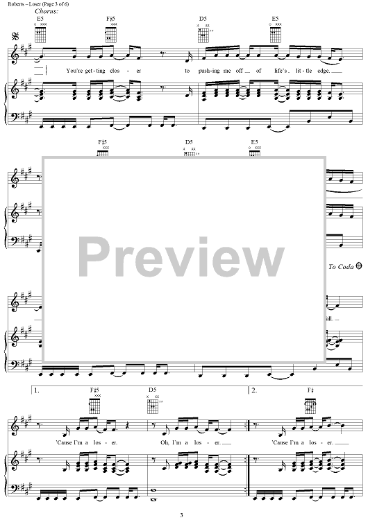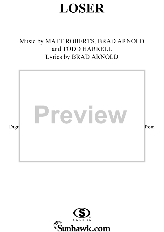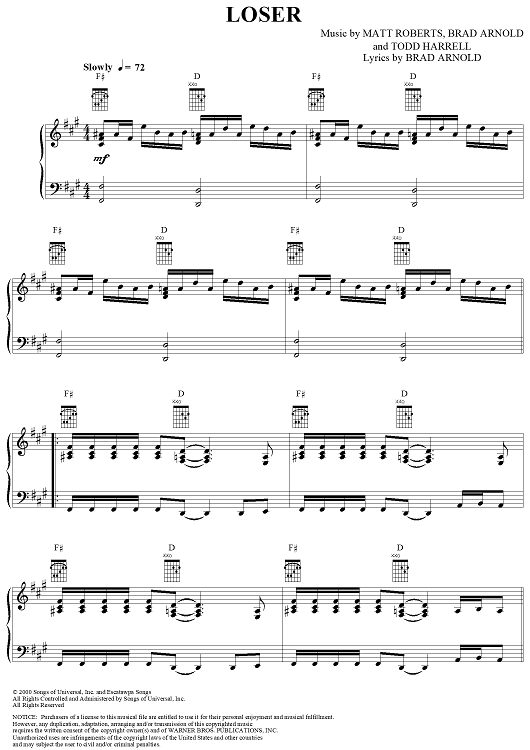 Digital Sheet Music for Loser by 3 Doors Down, Matt Roberts, Brad Arnold, Todd Harrell scored for Piano/Vocal/Chords; id:286391