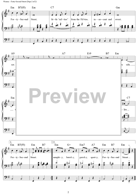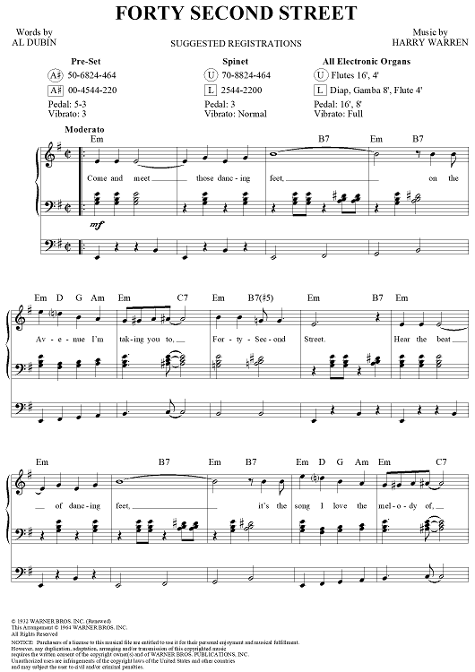 Digital Sheet Music for Forty-Second Street by Harry Warren, Al Dubin scored for Easy Organ/Vocal; id:264530