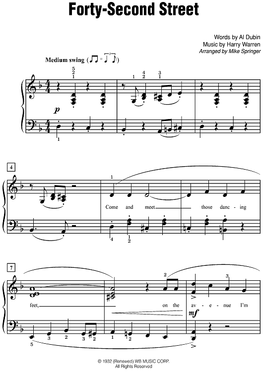 Digital Sheet Music for Forty-Second Street by Harry Warren, Al Dubin, Mike Springer scored for Easy Piano; id:497918