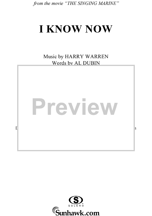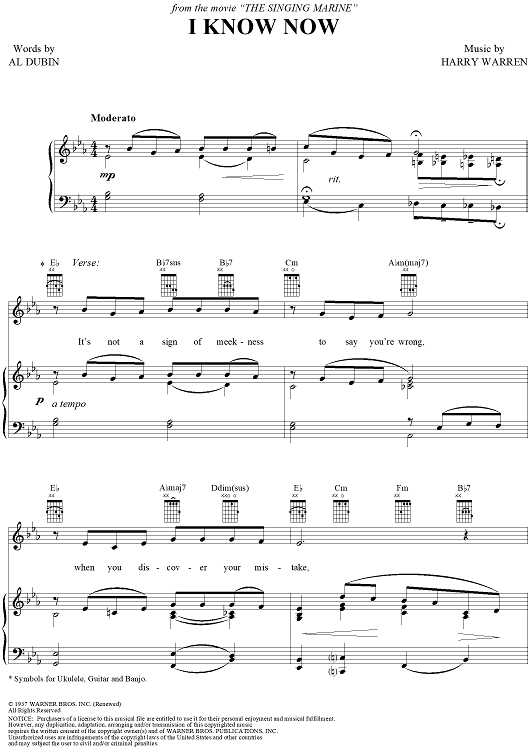 Digital Sheet Music for I Know Now by Harry Warren, Al Dubin scored for Piano/Vocal/Chords; id:264598