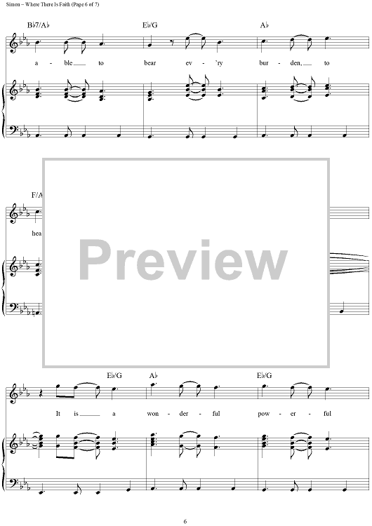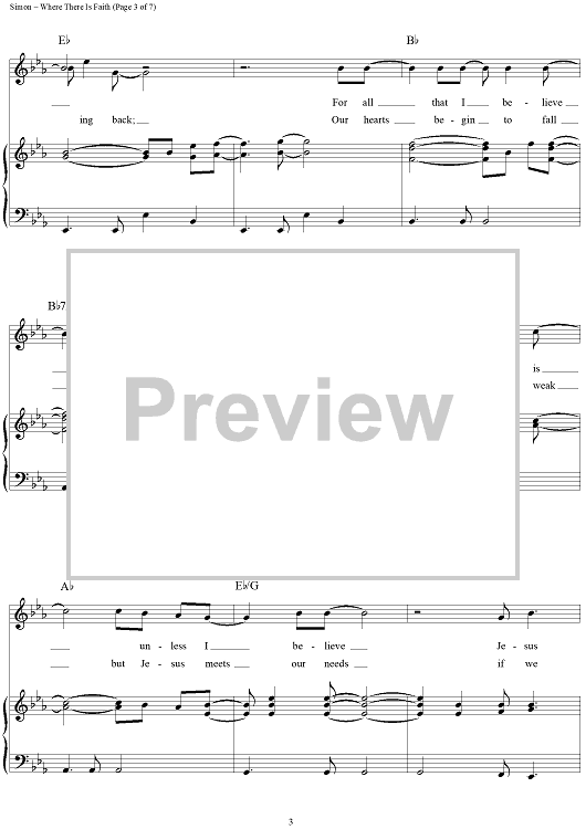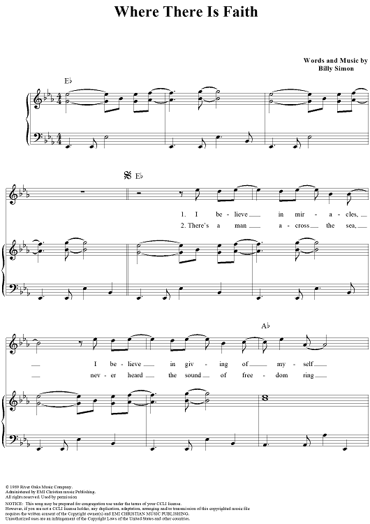 Digital Sheet Music for Where There is Faith by Billy Simon, 4Him scored for Piano/Vocal/Chords; id:119143