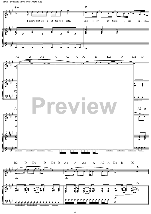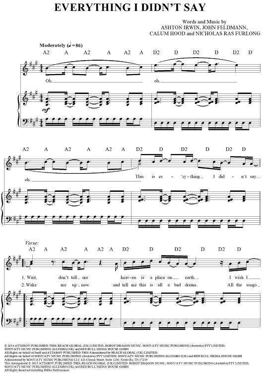 "Everything I Didn't Say" Sheet Music by 5 Seconds of Summer