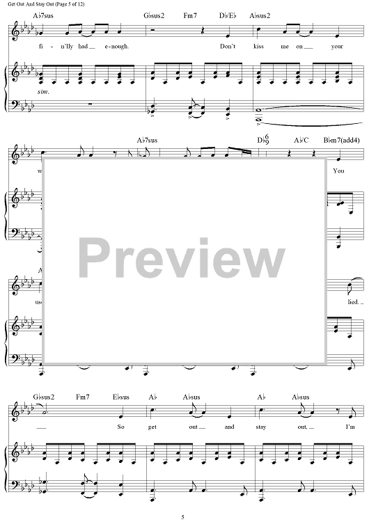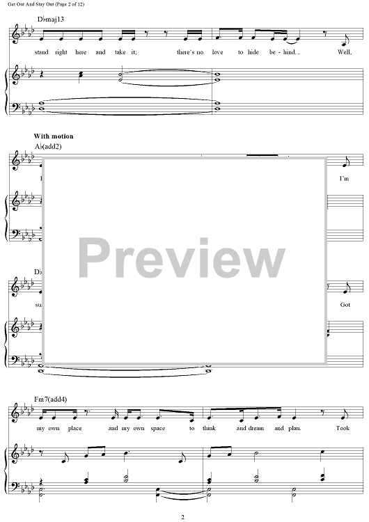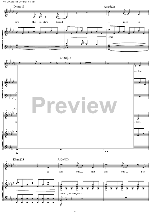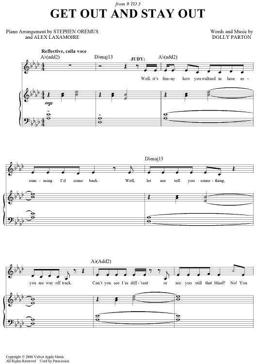 Digital Sheet Music for Get Out And Stay Out - from 9 To 5 The Musical by Stephen Oremus, Alex Laxamoire, Dolly Parton scored for Piano/Vocal/Chords; id:467499