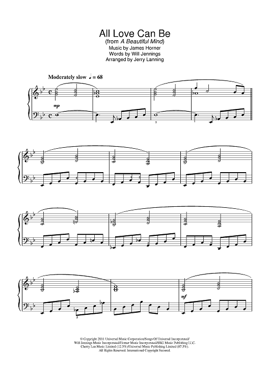Digital Sheet Music for All Love Can Be by Will Jennings, James Horner, Jerry Lanning scored for Piano; id:377593