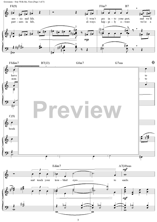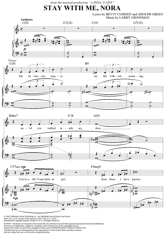 Digital Sheet Music for Stay With Me, Nora by Betty Comden, Adolph Green, Larry Grossman scored for Piano/Vocal/Chords; id:267597