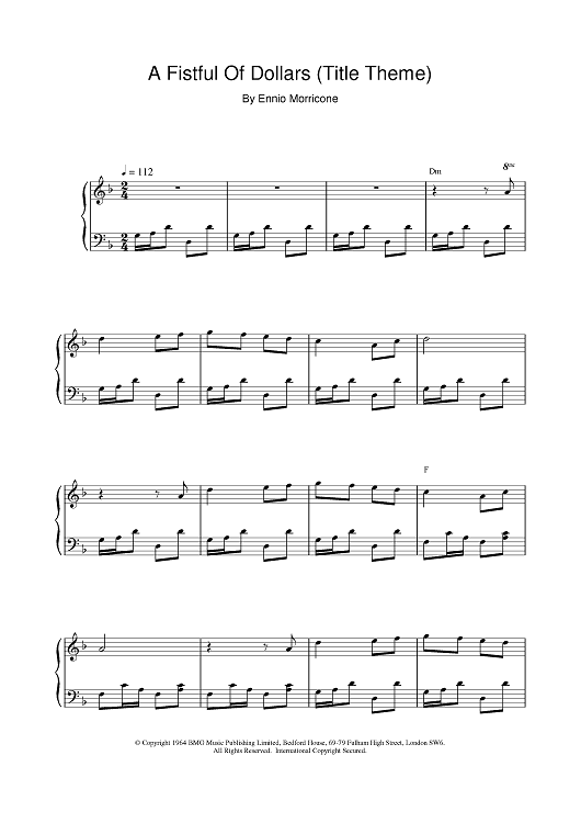 "A Fistful of Dollars (Title Theme)" Sheet Music by Ennio Morricone