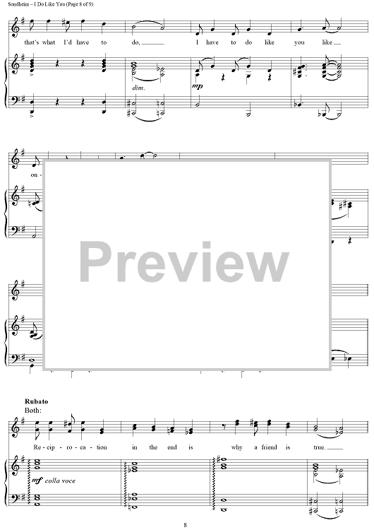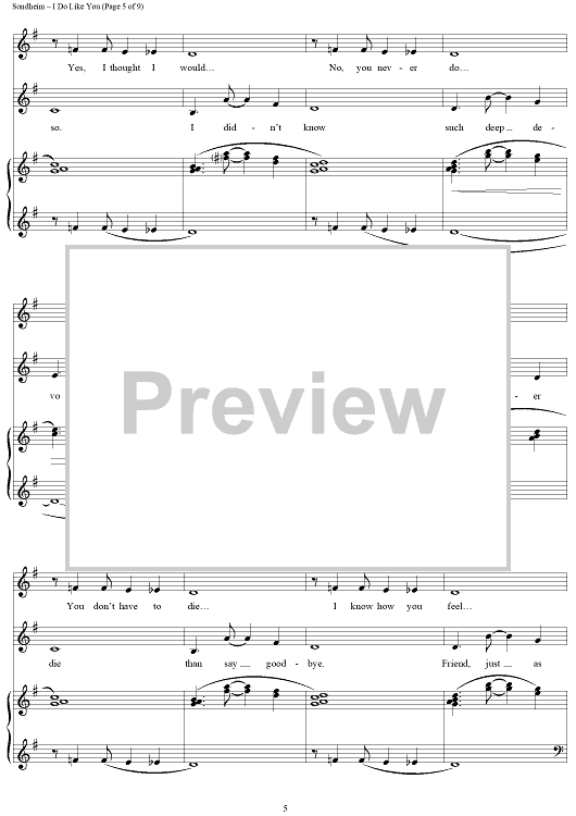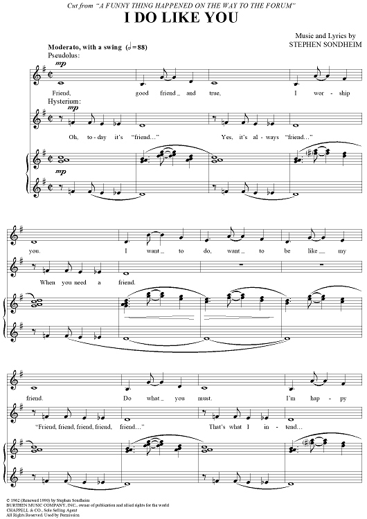 Digital Sheet Music for I Do Like You by Stephen Sondheim scored for Piano/Vocal; id:257821