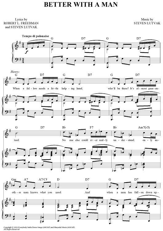 Digital Sheet Music for Better With a Man by Steven Lutvak, Robert L. Freedman scored for Piano/Vocal/Chords; id:445224