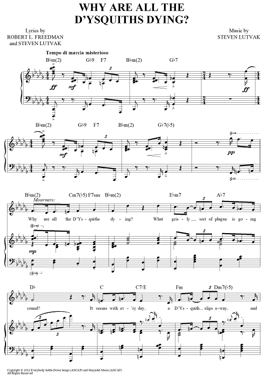 "Why Are All the D'Ysquiths Dying" Sheet Music by Steven Lutvak
