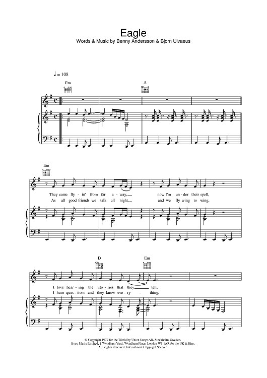 Digital Sheet Music for Eagle by ABBA scored for Piano/Vocal/Chords; id:376140