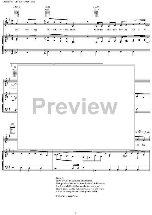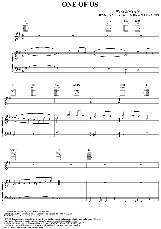 Digital Sheet Music for One of Us by ABBA, Benny Andersson, Bjorn Ulvaeus scored for Piano/Vocal/Chords; id:292374